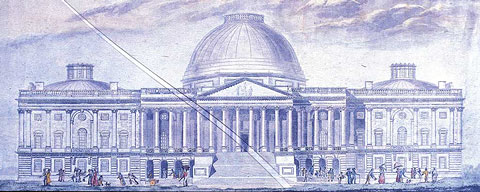 Image from the drawing of the Capitol Building’s architect, Charles Bulfinch, in 1826.
