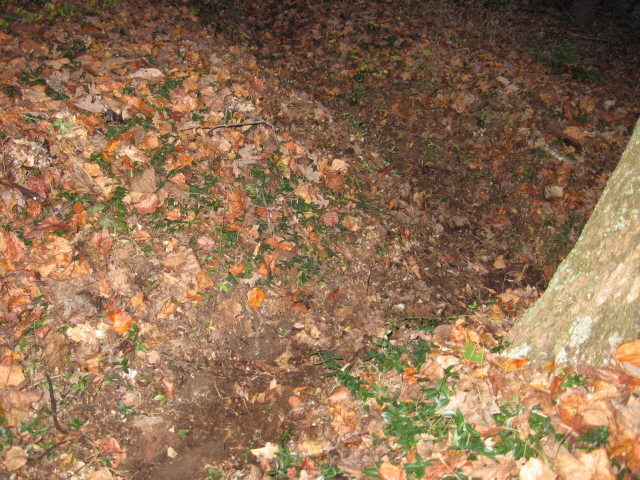 By pulling away the undergrowth from the side of the trough, one can still see a jumble of