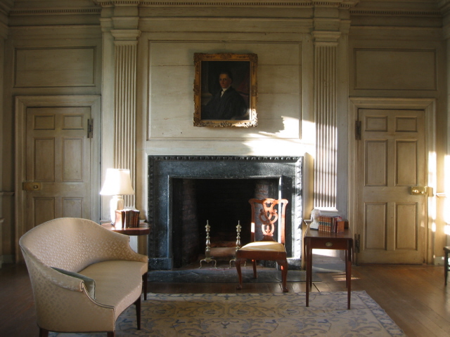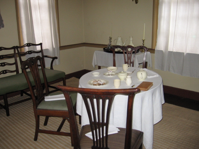 The two gentlemen probably entered through the door to the right, then proceeded up the narrow staircase to greet the ladies in the parlor on the second floor. Family lore has it that Mrs. Todd was dressed in mulberry-colored satin. |