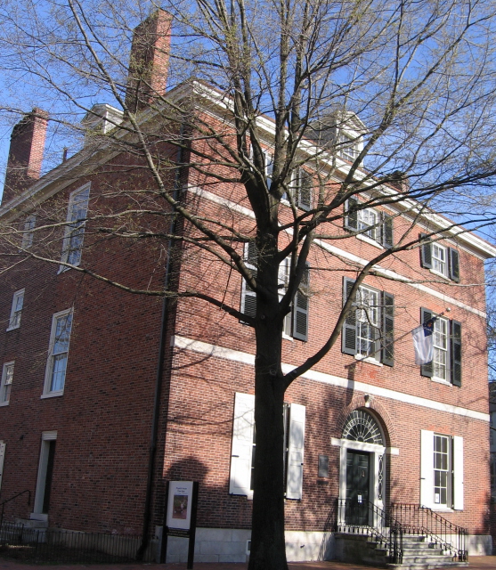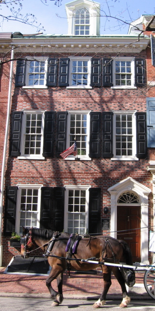 1. Drinkers' Home: When the Payne family moved to Philadelphia in 1783, they stayed first with some friends who were also fellow Friends (in other words, Quakers): Henry and Elizabeth Drinker. They lived on the northwest corner of Front Street and Drinker's Alley. Elizabeth Drinker is noteworthy in her own right for having left to posterity a diary full of local doings that spans many years. Her notes on the Payne family -- though scant -- offer some of the very few records we have of Dolley's early life. Nothing remains of the original Drinker house, but nearby Elfreth's Alley is remarkably well preserved, and it is worth a saunter down this lane to ponder what Miss Dolley Payne's neighborhood looked like when the teenager first arrived in Philadelphia.