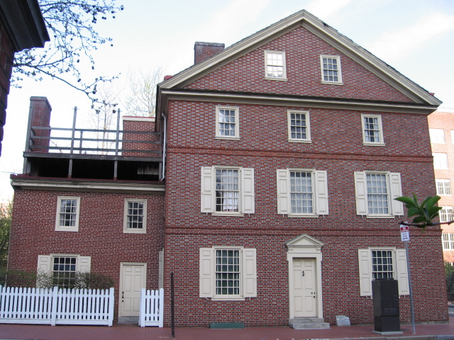 8. Todd House: About a year after their marriage, the Todds were able to buy a house of their own on the corner of Fourth St. and Walnut. There, John Todd practiced law on the first floor, in the room facing Walnut. The parlor and the family's bedrooms were on the second floor, and Todd's assistants lived on the upper floors. After Todd's death in 1793, the young widow attracted many potential suitors. In the spring of 1794, Dolley wrote to her friend, Eliza, "Dear friend, thou must come to me. Aaron Burr says that the 'great little Madison' has asked to be brought to see me this evening."