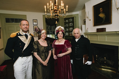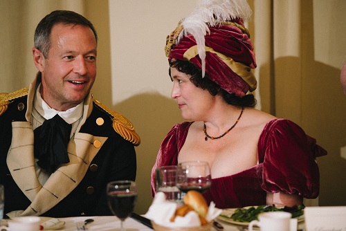 "Mr. and Mrs. Madison" were pleased to be able to stay in the very house where the president and his cabinet stayed on that fateful night almost 200 years earlier. On the couple's left are the fashionable Mrs. Heiler, their hostess and present owner of "The Madison House," and Governor O'Malley of Maryland |