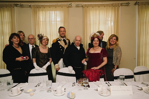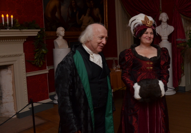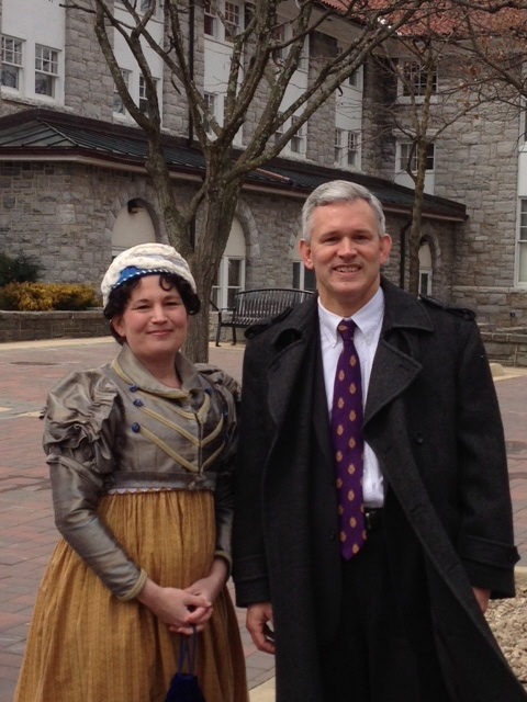After the British invaded Washington City and burned the White House on August 24, 1814, James and Dolley Madison were forced to flee the city. President Madison, certain that the British were pursuing him with the aim of making him a prized prisoner of war, spent the next three days in constant motion, moving from place to place. But he spent the night of August 26 in Brookeville, Maryland, with his cabinet, and together they strategized about the next steps they would take in the war. The town has since immortalized that night by dubbing itself "The United States Capital for a Day." The town is planning a spectacular commemoration for next year's bicentennial of that event, and on October 27, 2013, James and Dolley were pleased to participate in a fundraising event to help fund that celebration. An elegant dinner was served at the Inn at Brookeville Farms, followed by a silent auction.