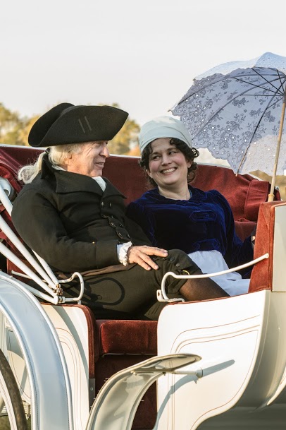 | Mr. and Mrs. Madison arrive at Montpelier in style. Photo courtesy the Montpelier Foundation. |