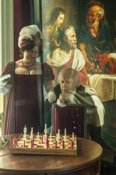On this day, a photographer from National Geographic took some intimate shots of "James and Dolley Madison" at home in Montpelier. He used an innovative photographic technique that "ghosts" the images of the people, making them look spectral and insubtantial, while maintaining a solid background of all the lovely objects at Montpelier. (A couple of the carriage photes were taken without the ghosting technique, and they are included for their loveliness). All of tese images are by Kenton Rowe Photography, courtesy of the Montpelier Foundation.