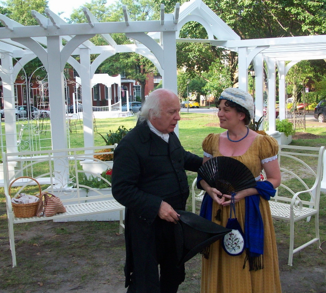 | Mrs. Madison escorts one of Montpelier's most steadfast supporters to lunch. |