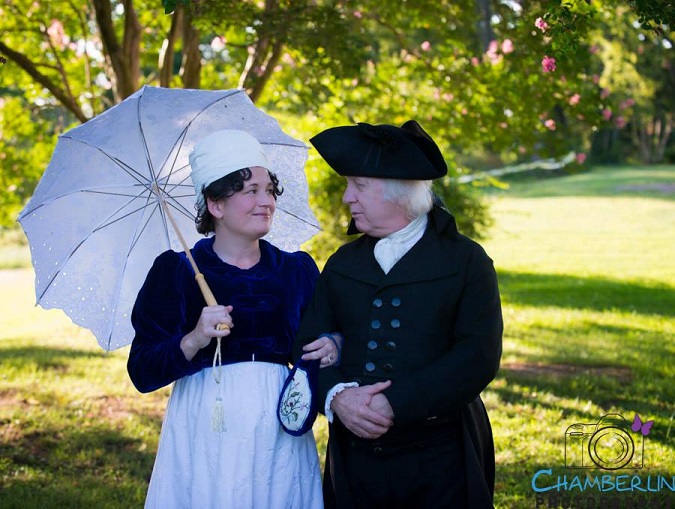 Although the house where James Madison was born was later destroyed, another plantation house -- almost as old -- was built on the same site: Belle Grove. In the summer of 2013, James Madison's birthplace opened to the public as an elegant Bed & Breakfast, and Dolley and James were pleased to share in some of the opening festivities. Later, Mr. and Mrs. Madison were pleased to be the pampered guests at Belle Grove Plantation, and this tranquil interlude was captured in a "Portraiture Shoot." Mark and Mary Chamberlin, the husband-and-wife photography team, are true artists, as anyone can see from the fruits of the day . . .