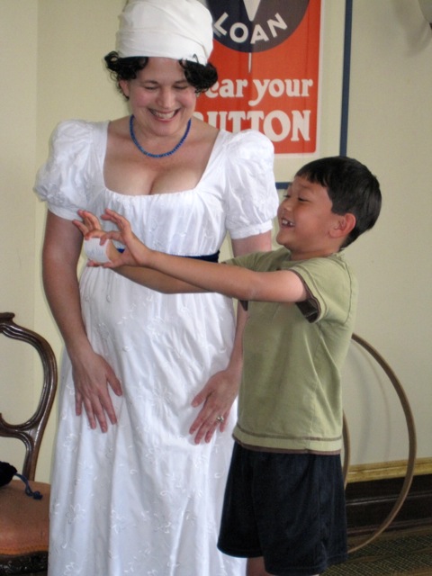 Dolley Madison helps some boys and girls discover the young ladies and gentlemen hidden within them. Above: Mrs. Madison gives a few pointers on