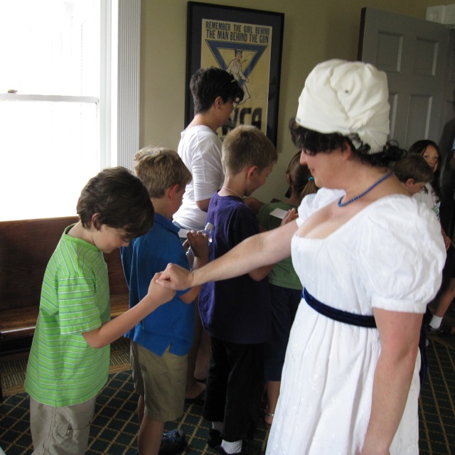 The Woodrow Wilson Library, in Staunton, Virginia, hosted it's seventeenth annual "Journey into History Summer Camp." The theme of the 2013 camp was: "Pathways to the Presidency: Virginia's Eight Presidents." Each of the two week-long sessions included games, crafts, and activities, and the camp culminated in an inaugural ball. During each session, Dolley Madison visited with the campers and discussed etiquette and the social graces from the perspective of her own life and times.